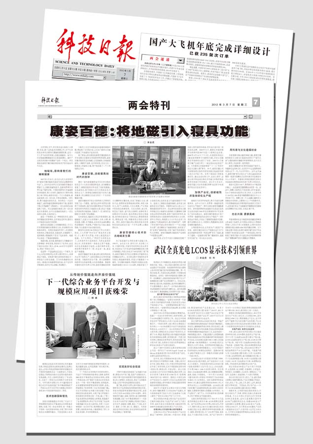 2012年3月7日,《科技日報》兩會特刊對秦皇島康姿百德高新技術(shù)開發(fā)有限公司進行了大篇幅的專題報道。整篇報道立體地展現(xiàn)了康姿百德磁性功能寢具的獨特優(yōu)勢,全面地回顧了康姿百德輝煌的發(fā)展歷程。