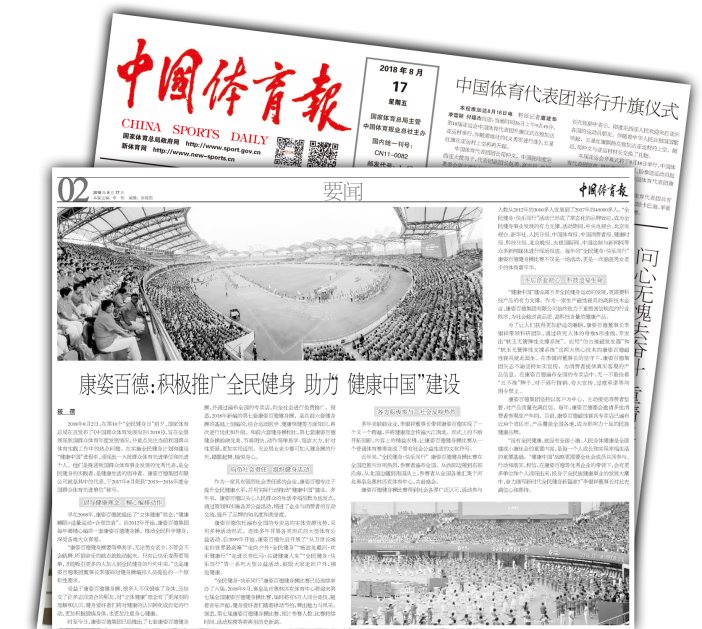 2018年8月17日,《中國體育報》對康姿百德集團有限公司及“全民健身·快樂同行”全國康姿百德健身操比賽進行了報道。以下是報道全文: