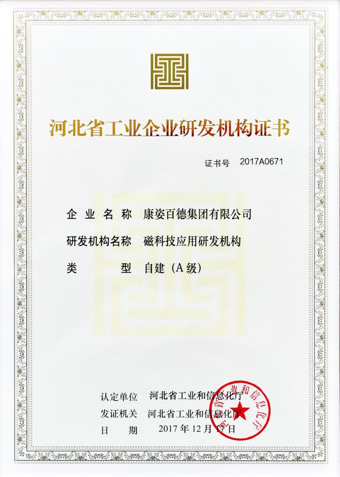 日前,經(jīng)河北省工業(yè)和信息化廳審定,康姿百德集團(tuán)入選河北省工業(yè)企業(yè)研發(fā)機(jī)構(gòu)名單,被認(rèn)定為磁科技應(yīng)用研發(fā)機(jī)構(gòu)(A級)。