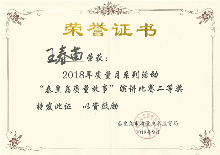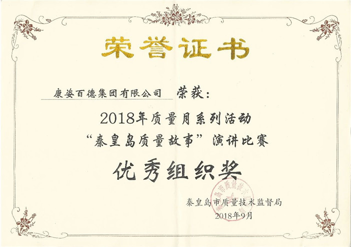 2018年9月26日,“秦皇島質(zhì)量故事”演講比賽總決賽隆重召開。為響應(yīng)國家2018年質(zhì)量月活動,康姿百德積極參與,并榮獲二等獎(jiǎng)及優(yōu)秀組織獎(jiǎng)。