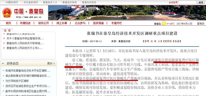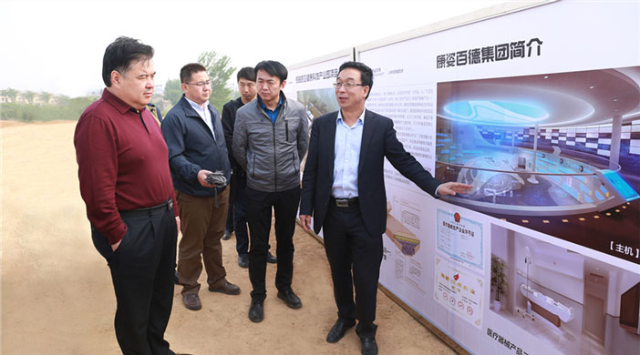 2017年5月10日,秦皇島市長張瑞書深入康姿百德第二科技園,就項目建設(shè)情況進行調(diào)研,康姿百德集團董事長李銀祥等集團領(lǐng)導陪同調(diào)研。