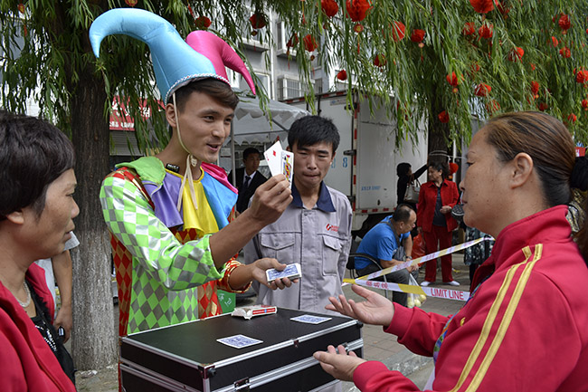 9月18日,是康姿百德公司十周年慶典參觀活動(dòng)的第二天,前來(lái)參觀科技園的各地朋友絡(luò)繹不絕、熱情不減。參觀完科技展廳和制造中心,大家爭(zhēng)相與“福、祿、壽、財(cái)”卡通精靈和十周年慶典大型絹花景觀合影,期待把最燦爛的笑容留在康姿百德。由公司員工表演的精彩紛呈的魔術(shù),看得大家瞠目結(jié)舌、翹指贊賞,一些熱心的朋友還拉起魔術(shù)師的手要求講出其中的奧秘。在“神秘雕像”前,表演者一動(dòng)不動(dòng)的神奇“騰空術(shù)”引得許多朋友駐足圍觀,大家?guī)缀跬浟颂鞖獾难谉?,一?huì)扮扮鬼臉,一會(huì)講講笑話,直至逗玩得“雕像”露出笑容,大家也跟著哈哈大笑起來(lái),歡樂(lè)的笑聲給康姿百德科技園增添了不少喜慶祥和。