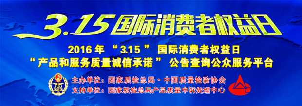 更多詳情可登陸中國(guó)質(zhì)量網(wǎng)2016年“3.15”國(guó)際消費(fèi)者權(quán)益日“產(chǎn)品和服務(wù)質(zhì)量誠(chéng)信承諾”公告查詢服務(wù)平臺(tái)http://act.chinatt315.org.cn/2016315/chengnuo/