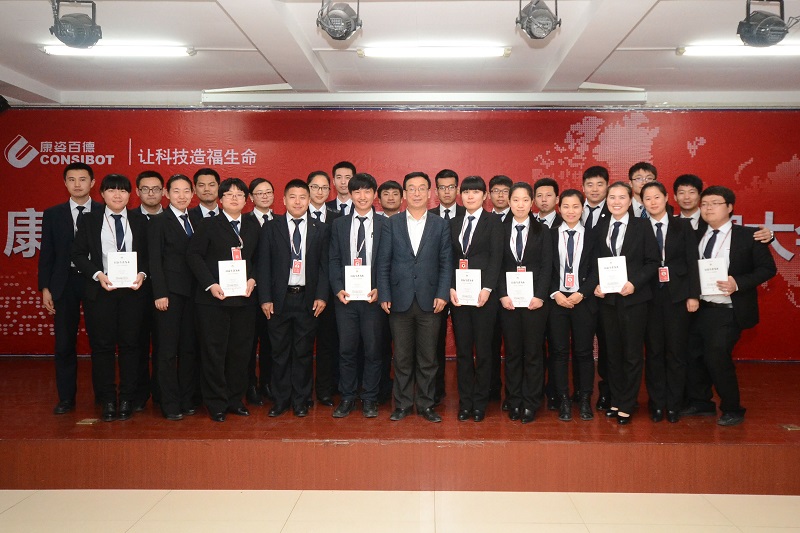競(jìng)聘成功的部分小伙伴和康姿百德董事長(zhǎng)合影留念