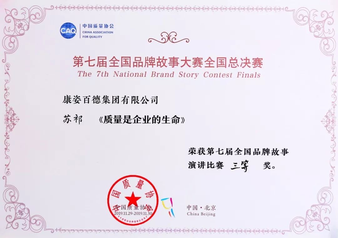 品牌是企業(yè)競爭力的標志,質量是企業(yè)品牌聲譽,也是迎接企業(yè)發(fā)展、面臨挑戰(zhàn)的關鍵因素。滿載著全國品牌故事大賽的榮譽,我們將更加堅定、更加專業(yè)化地做好品牌升級,讓“康姿百德”品牌與世界共享,所有康姿百德人也將助力康姿百德推進品牌建設,持續(xù)打造中國品牌核心競爭力,再創(chuàng)中國制造品牌享譽世界的新輝煌!
