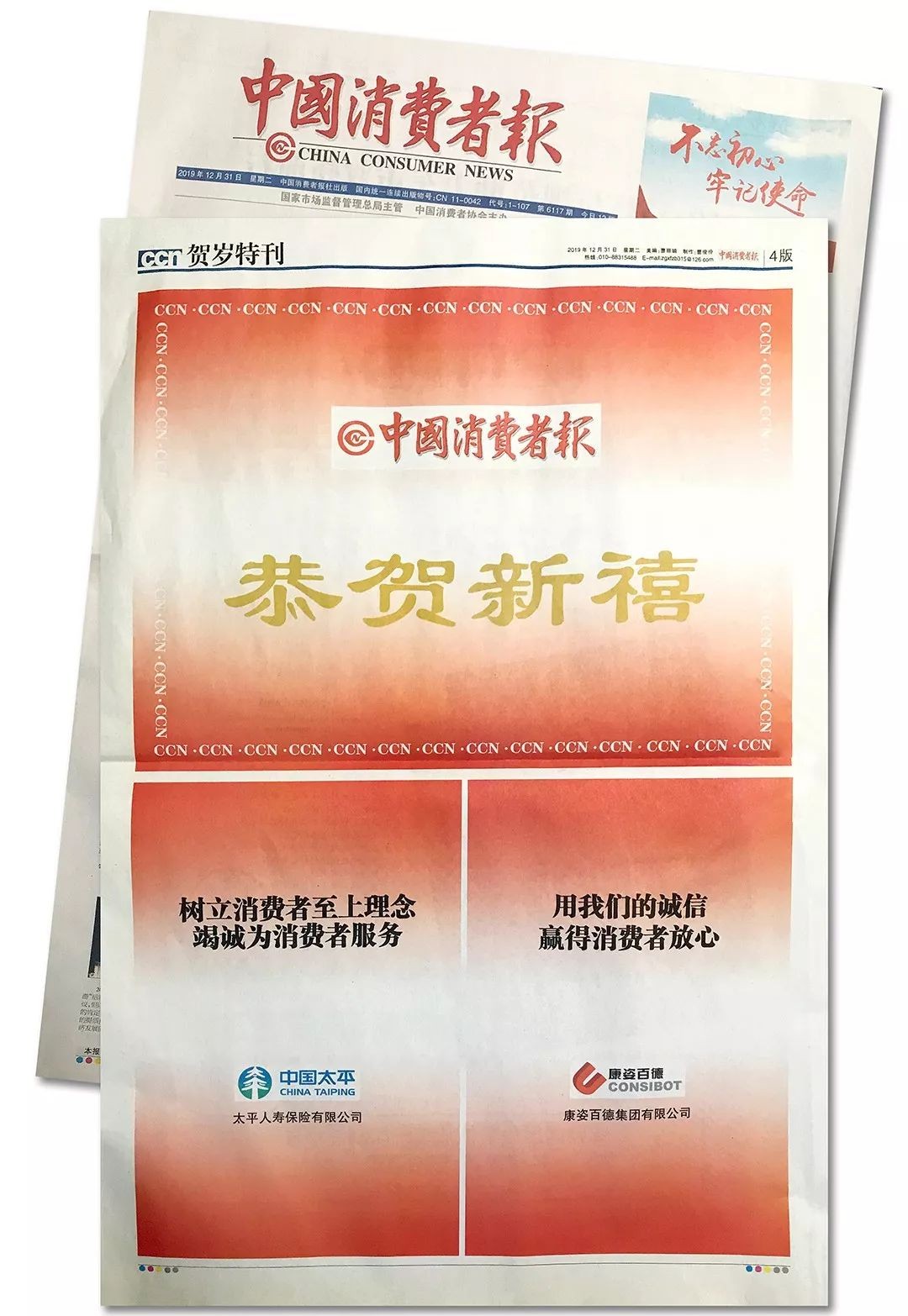 20191231日,康姿百德再次榮登《中國消費者報》,這也是2019年第四次榮登此報。本次《中國消費者報》邀請了在消費維權(quán)領(lǐng)域成績優(yōu)秀的幾家知名企業(yè),康姿百德作為受邀企業(yè)之一在賀歲版面進行刊登,在新年來臨之際,為廣大消費者送上新春祝福。