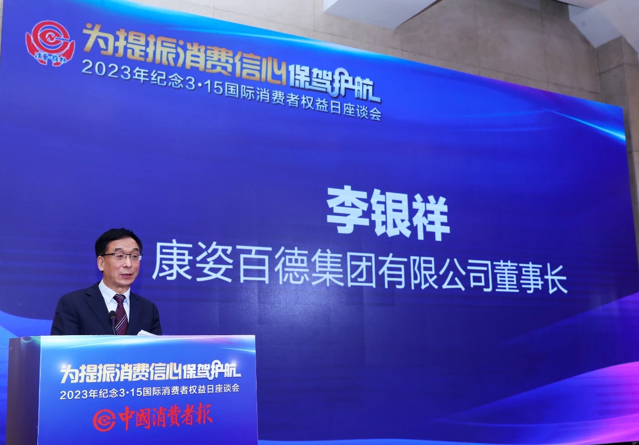 2023年3月14日,經(jīng)國家市場監(jiān)督管理總局、中國消費者協(xié)會指導,中國消費者報社、中國消費網(wǎng)主辦的2023年度“紀念3·15”國際消費者權益日座談會在京召開。來自國家市場監(jiān)管總局相關司局負責人、中國消費者協(xié)會領導,以及在保護消費者權益方面貢獻突出的典范企業(yè)等,共同參加本次座談會。康姿百德集團董事長李銀祥受邀出席,并作主旨演講。
