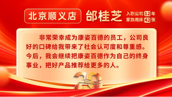 康姿百德20周年專賣店員工的系列故事會(huì)持續(xù)推出,讓我們一起期待其他地區(qū)專賣店員工代表的精彩故事吧!