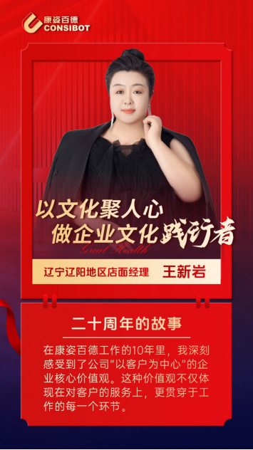 今年是康姿百德集團(tuán)成立20周年。在20年的發(fā)展歷程中,涌現(xiàn)出一大批在經(jīng)營管理、原料采購、品牌宣傳、暖心服務(wù)、人才引進(jìn)和培訓(xùn)等各個領(lǐng)域立足崗位、奉獻(xiàn)建功的優(yōu)秀代表。讓我們一起看看這些榜樣故事。本期帶你走進(jìn)康姿百德遼寧遼陽地區(qū)店面經(jīng)理王新巖。
