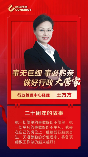 今年是康姿百德集團(tuán)成立20周年。在20年的發(fā)展歷程中,涌現(xiàn)出一大批在經(jīng)營管理、原料采購、品牌宣傳、暖心服務(wù)、人才引進(jìn)和培訓(xùn)等各個(gè)領(lǐng)域立足崗位、奉獻(xiàn)建功的優(yōu)秀代表。讓我們一起看看這些榜樣故事。本期帶你走進(jìn)康姿百德行政管理中心經(jīng)理王方方。