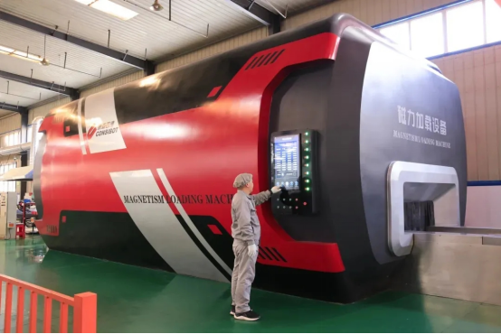 磁力加載設(shè)備是磁性寢具自動(dòng)化生產(chǎn)線的重要組成部分,是由康姿百德集團(tuán)自主研發(fā)、設(shè)計(jì)的??底税俚麓帕虞d設(shè)備全長(zhǎng)15米,寬5米,高4米。設(shè)備外觀采用工業(yè)美學(xué)設(shè)計(jì),融入現(xiàn)代化工藝及設(shè)計(jì)元素,展現(xiàn)了康姿百德集團(tuán)科技、智能、高端的品牌形象。